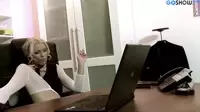 In an office filled with desire and erotic anticipation, a kinky secretary was busy typing away at her desk.Wearing nylon stockings that teased the imagination, her garter held the stockings firmly in place, showing off just enough skin to drive any man wild.The room was full of tension, and it was obvious the boss had had his eyes on her for a while now.As he walked in, she pretended not to notice him but her heart raced, wondering what he wanted.He stood at the edge of her desk, his cock straining against the fabric of his trousers as his horny glances went up and down her body.Her nipples hardened under the sensation of his lustful gaze.He started to stroke her with his tongue as it darted in and out, making her wet pussy tremble in response.At the same time, he began to caress her with his cock, teasing her lips until she felt a desperate need for fulfillment.As the kinky foreplay continued, he couldnt help but finger her wet pussy while she sucked his hard, throbbing cock deeper and deeper into her throat, creating a sense of euphoria that overtook the room.They both knew they wanted to take their passion further.The boss looked at her and commanded, Fuck me.She nodded, eager to please him in every way as he instructed.He pulled out his spermcovered cock and positioned himself between her ass cheeks, sliding it into her wet pussy in one smooth motion.Their bodies came together with forceful passion, both desperate for the release they craved.He thrust into her hard and deep, her juices dripping down his cock while he penetrated her with a kinky dominance.Her nails dug into his back, as she tried to match his tempo with her own, eager to feel him hit that special spot.Their bodies moved in tandem, sweat and lust making them one in their shared need.Suddenly, the bosss eyes rolled back, a sign he was close to orgasm.He pulled out his dick and jerked off violently, cumming all over her face, making her breasts and nipples glisten with the mixture of love juice.His sperm spattered across her cheek and chin, leaving a sticky mess for the kinky secretary to lick clean.In this office fantasy world, no one would dare interrupt them.All that mattered now was the erotic fulfillment they shared, making the most of their secret office tryst.The boss couldnt help but think about his next visit, and the kinky secretary fantasized about her next encounter.